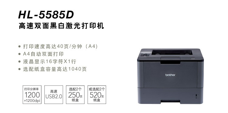 兄弟(brother)HL-5585D A4黑白激光打印机自动双面打印