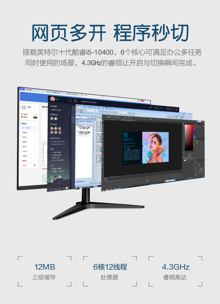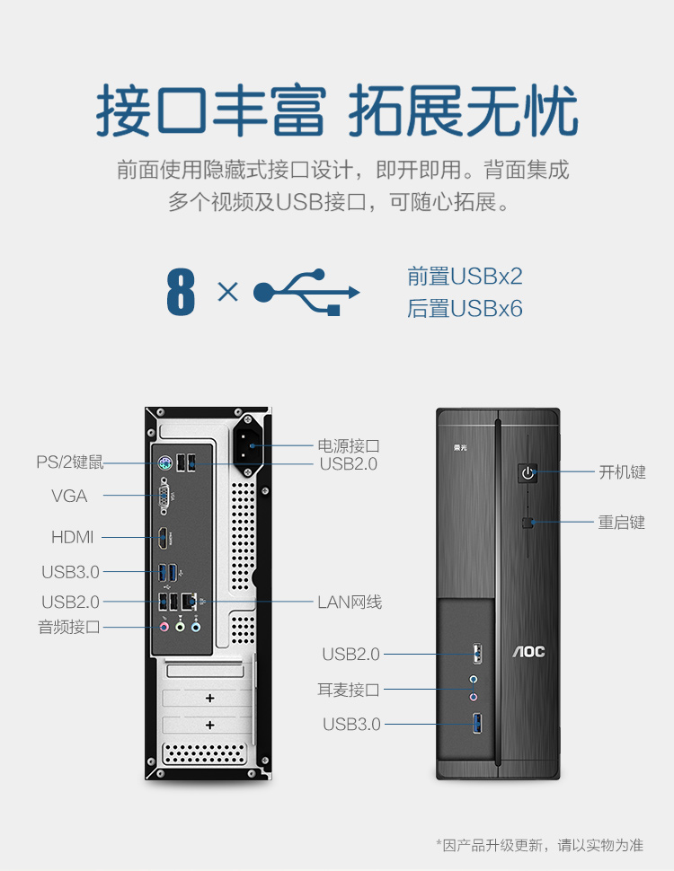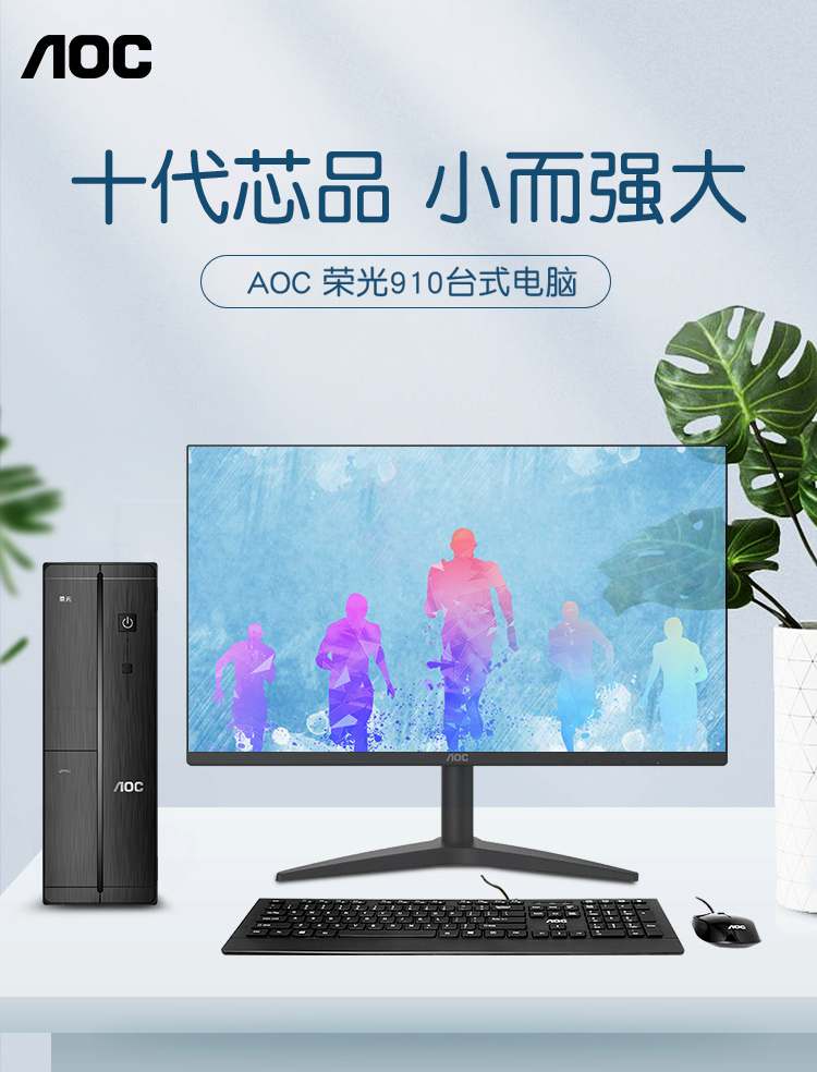 AOC 荣光910 迷你办公台式电脑主机(十代i5-10400/16G/512G SSD/三年上门/商务键鼠)