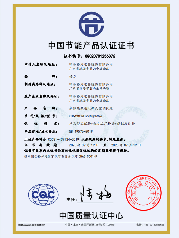 | 认证型号 | KFR-120TW/(12550S)NhCa-2 |