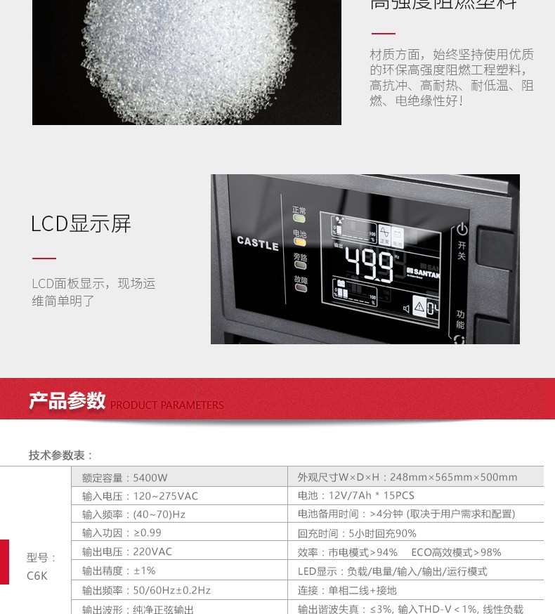 山特(SANTAK)C6K 在线式UPS不间断电源 稳压服务器机房电脑停电后备电源 6KVA/5400W内置电池标准机