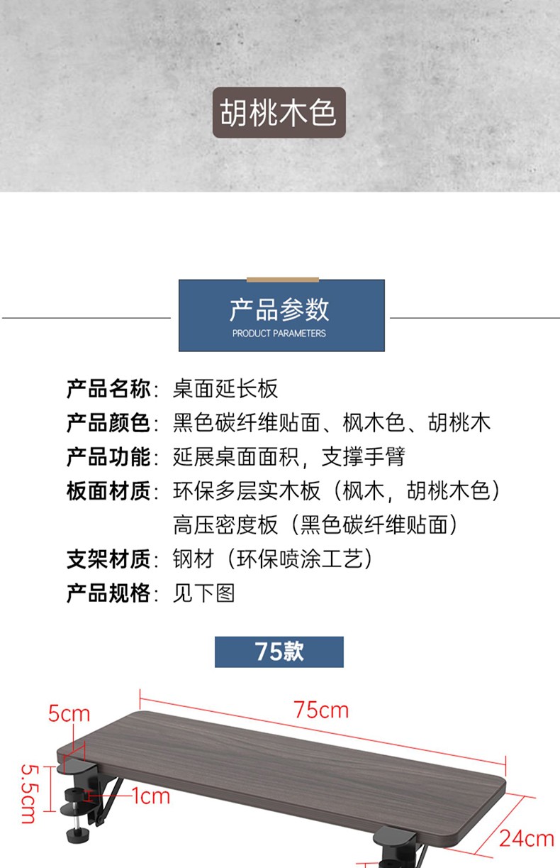 桌面延长板免打孔扩展板电脑桌子加长延伸板(白色实木延长板75*24cm)