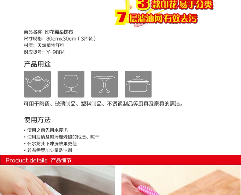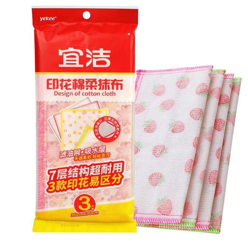 宜洁 Y-9767 印花棉柔抹布3片装 30cmx30m