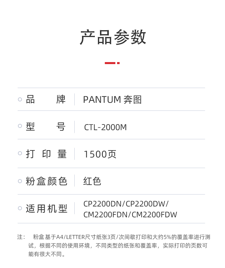 奔图(PANTUM)CTL-2000M原装红色粉盒