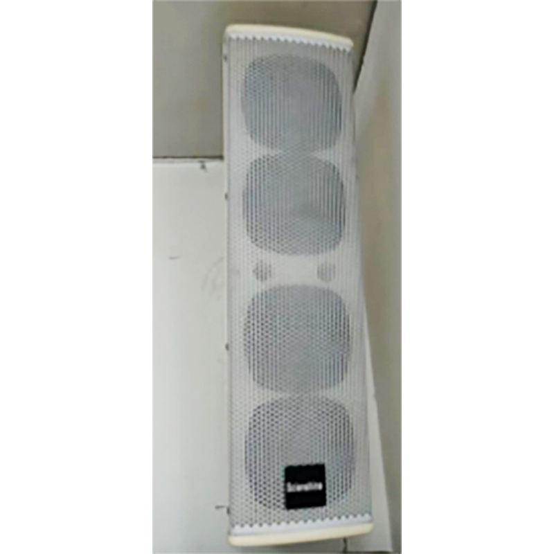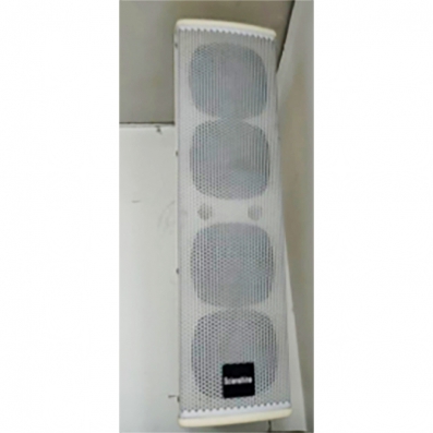 4单元结构,4个3寸全频单元,白色铝合金外壳、前置导气,加强承重板、机加工铝合金盖、圆孔弧网、二位红黑接线方座, 额定功率:80W,最大功率:120W,/ 阻抗:8Ω /灵敏度:91dB(1W,1m) /频率响应:150Hz~18kHz,