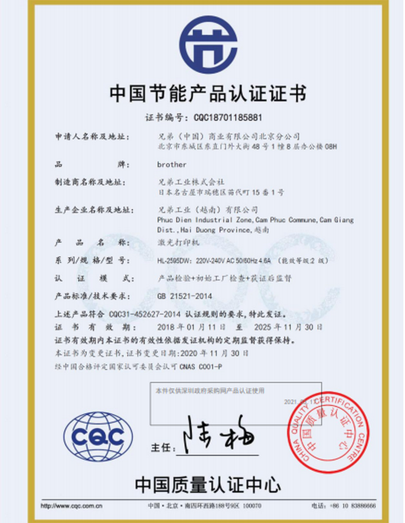 | 制造商名称 | 兄弟工业(越南)有限公司 |