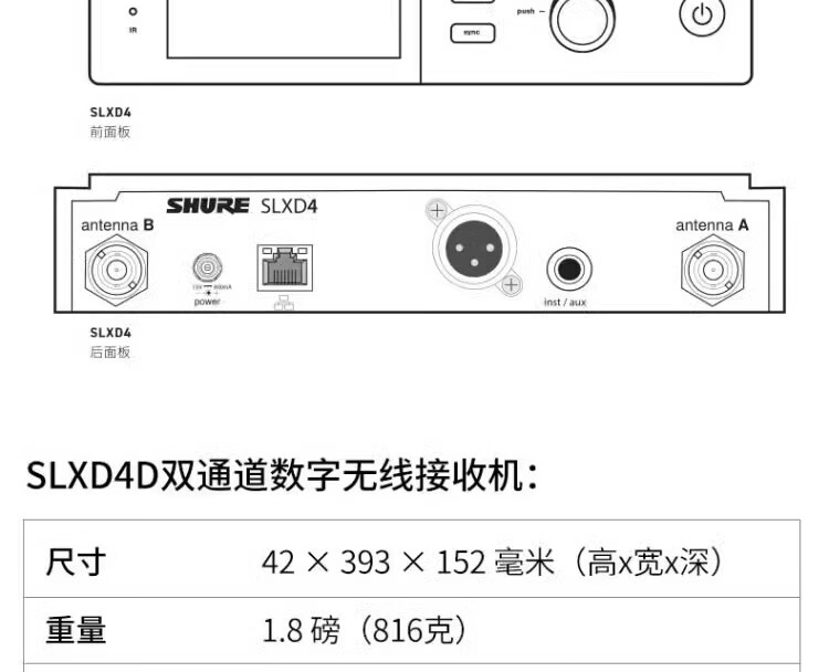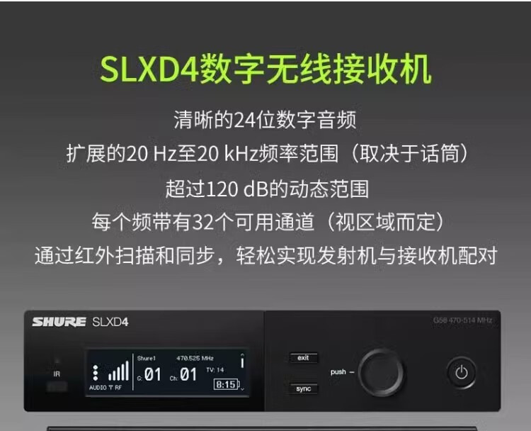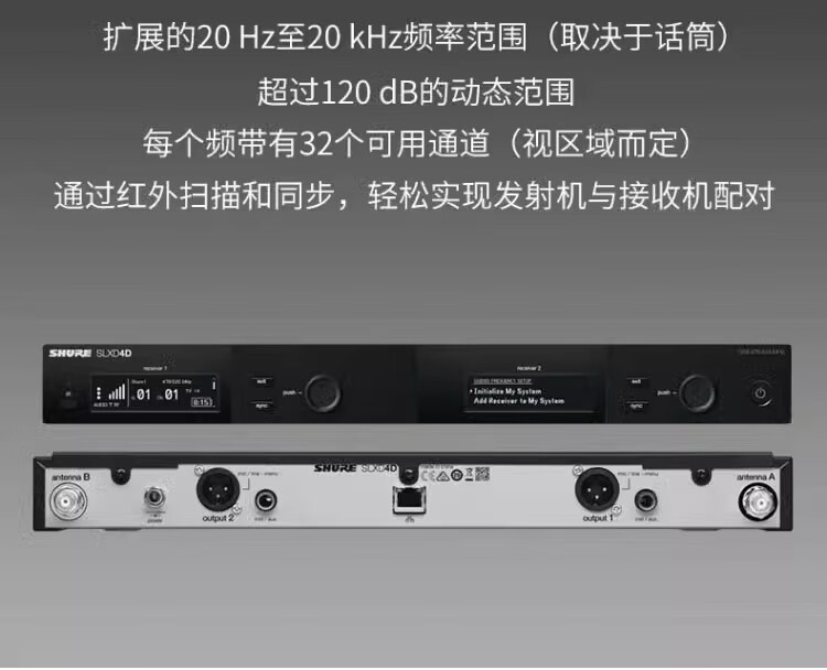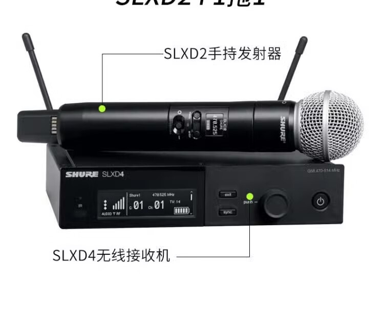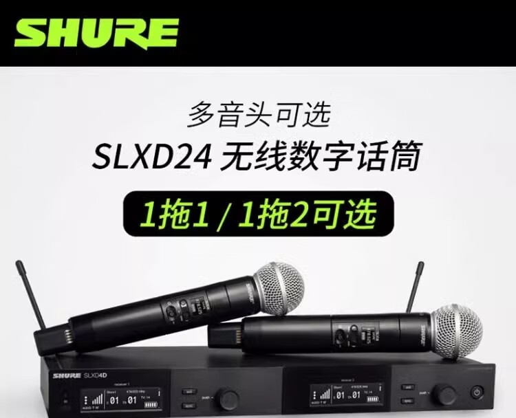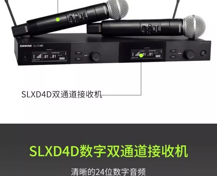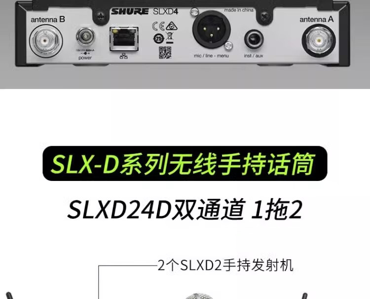 SHURE 舒尔 SLXD24/SM58 一拖一二专业数字无线专用话筒(含无线话筒天线分配器UA844+SWB-LC和天线分配器UA844+SWB-LC)质保五年