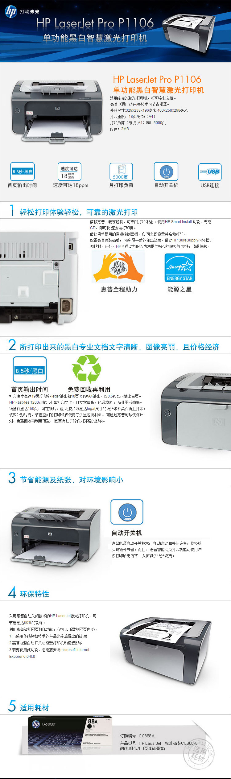 | 黑白打印速度(页/分钟 ppm) | 18 |