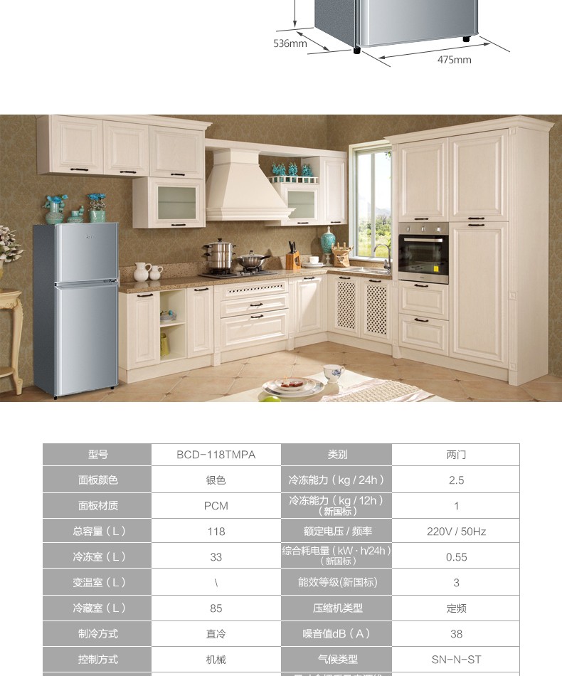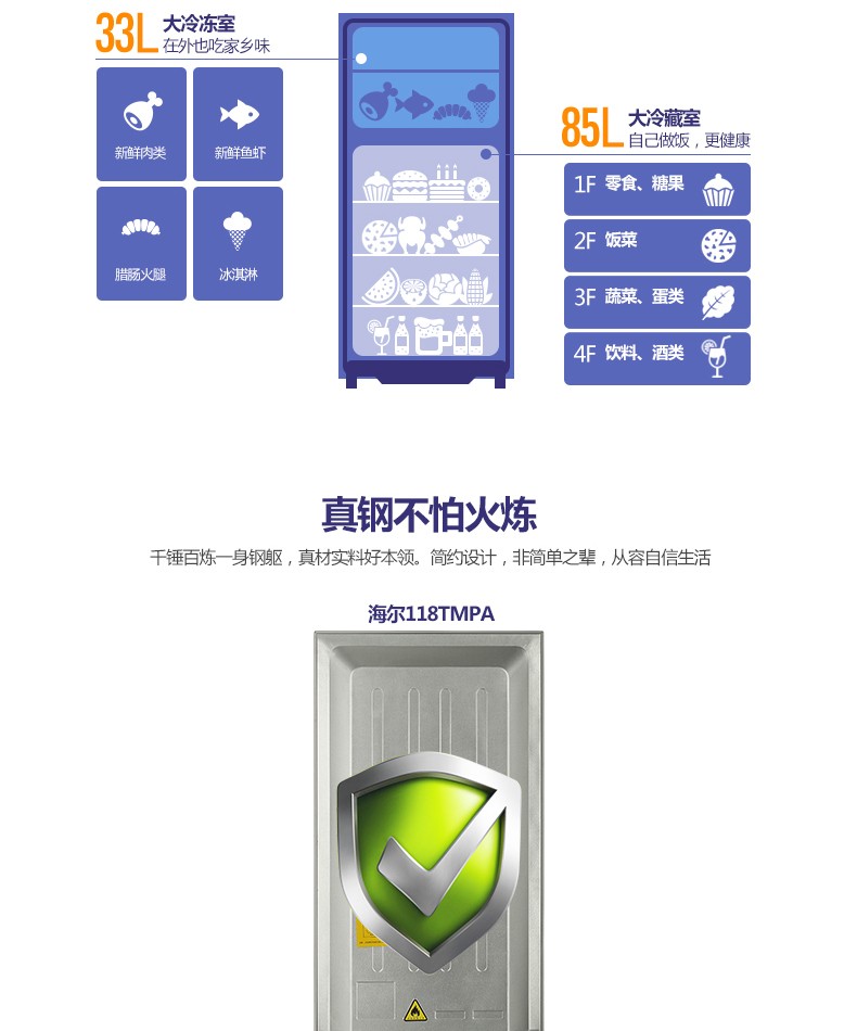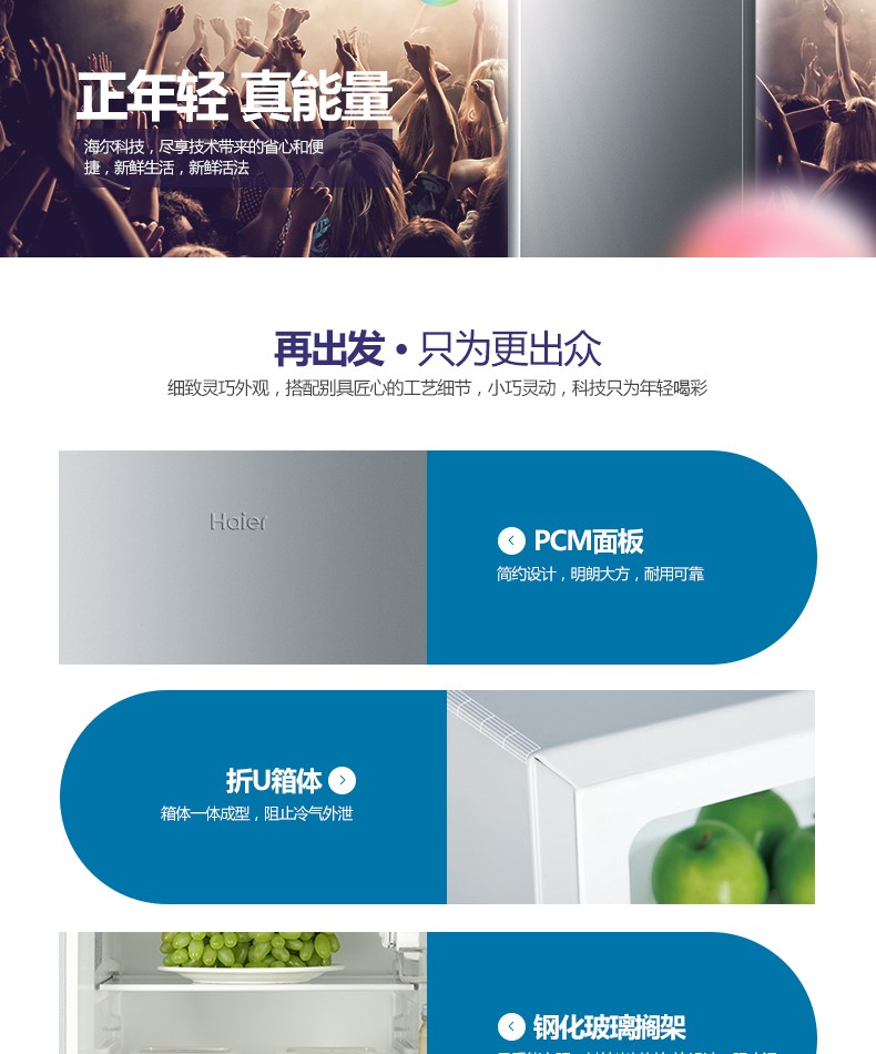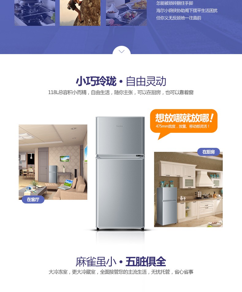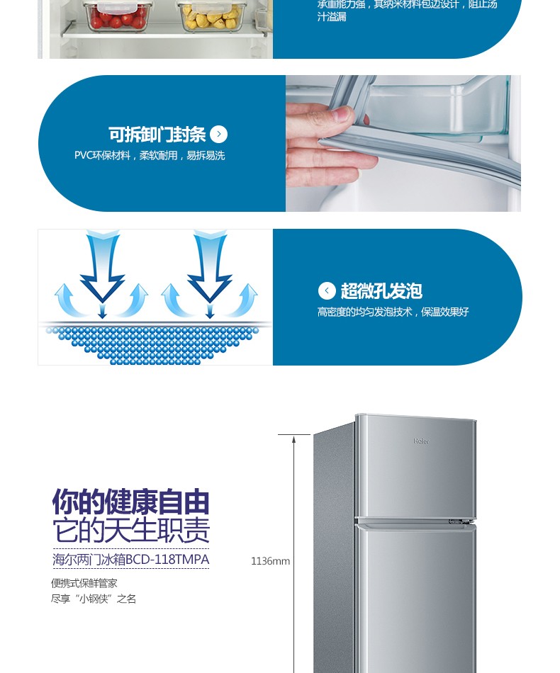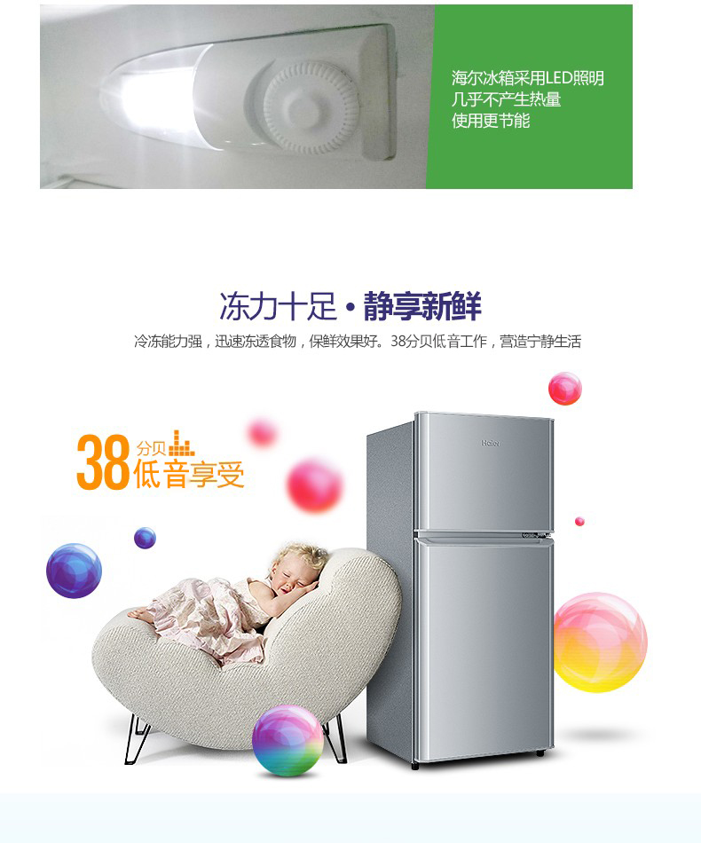 海尔(Haier)BCD-118TMPA 118升两门迷你小型双门冰箱 单位:台