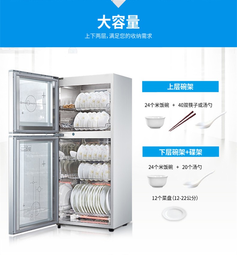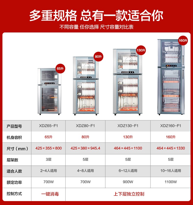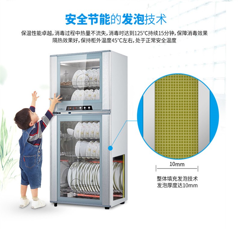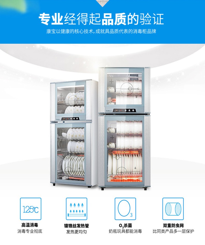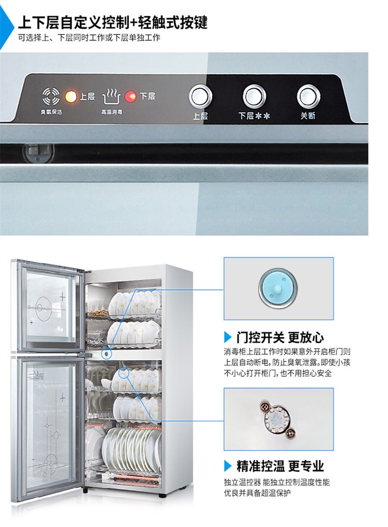 康宝(Canbo)消毒柜上下层 独立控制 臭氧 高温消毒 上层可消毒塑料碗具 奶瓶 家用 厨房办公室 XDZ65-F1/ZTP80F-1(65L)