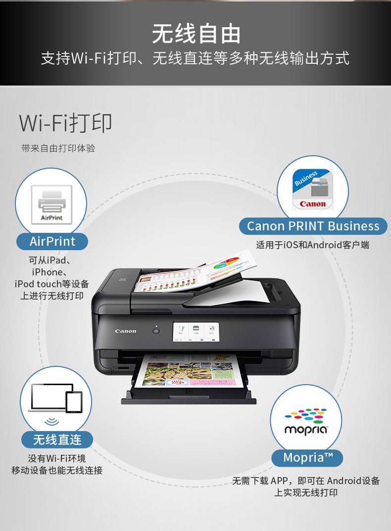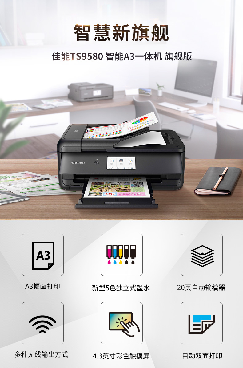 佳能(Canon)TS9580 A3幅面无线彩色喷墨多功能一体机(打印/复印/扫描 WiFi/微信远程打印/自动双面)