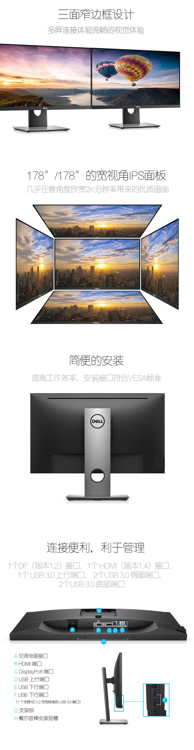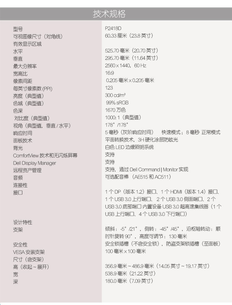 戴尔显示器 P2418D 戴尔显示器 23.8英寸/分辨率2560*1440 DP/HDMI接口 送货上门 戴尔显示器